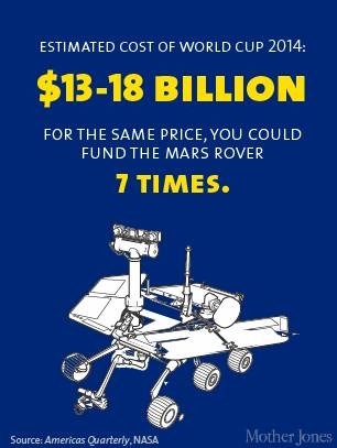 – 30 billion dollars spent on the WorldCup – more than the last 3 WorldCups combined (socialized debt for Brazilians & privatized profits of course!