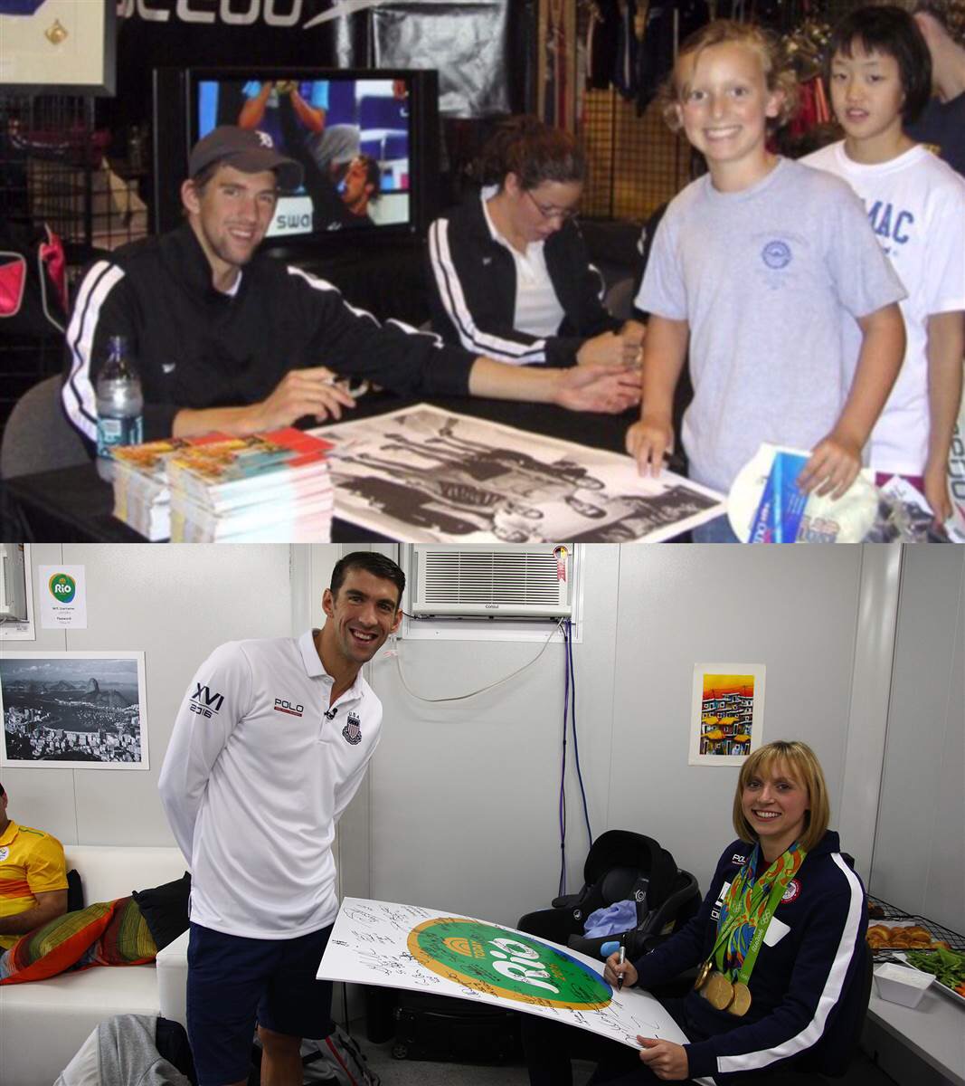 كاثي لداكي طفلة ال٦ سنوات الامريكية والتي كانت تتابع انتصارات السباح الامريكي مايكل فيُلبَس والتي وقفت في طابور المعجبين والمعجبات الطويل في عام ٢٠٠٦ عندما كانت ٩ سنوات وتتعلم السباحة والمنافسة عليها في ذلك الوقت في انتظار اوتوجراف او توقيع مايكل فيُلبَس ،،، وبعد مرور عشرة سنوات مرت من عمر كاثي تم اختيارها لتمثل بلدها في نفس فريق السباحة الذي يشارك به فيُلبَس بعد ان اصبح عمر فيُلبَس ال٣١ عاما والذي يعتبر مثلها الاعلي في اللعبة وحافز لها ان تحقق حلمها في الوقوف يوما مثله والاحتفال بالحصول علي ميدالية أوليمبية وهكذا بالمثابرة والتمرين استطاعت كاثي ان تحصل ليس علي ميدالية واحدة في اول تمثيل أوليمبي بل علي خمسة ميداليات ذهبية وتحقق ارقام أوليمبية في السباحة باسمها لأول مرة في المنافسات ولأنعلم مني ومن وأين سوف يتم تحطيم أرقامها الاوليمبية الجديدة والتي سجلت باسمها مرتين حتي الان ومااشبه الليلة بالبارحة فلقد ذهب اليها مايكل فيُلبَس ليكتب علي لوحة الشرف المهداة لها لإنجازها التاريخي الأوليمبي تقديره واحترامه والتهنئة لكاثي ،،، انه الطموح والمثابرة والتمرين الشاق والرغبة في النجاح الذي جعل الفتاة ذات ال٩ سنوات بعد ان كانت من صفوف المعجبات تصبح في صفوف المنافسة والبطولة ومن خلال كل هذه العوامل استطاعت كاثي ان تحول حلمها الي حقيقة