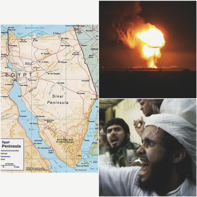 من هنا تنفيذ تفجيرات طابا ونوبيع في 7 اكتوبر 2004 وغيرها من الهجمات الارهابية في سيناء في الاعوام الماضية حتي الاسبوع الماضي عندما قامت منظمات الجهاد بالاشتراك مع تنظيم التوحيد والجهاد بالوقوف مع جماعة الاخوان بعد عزل محمد مرسي وتصريح البلتاجي احد قيادات الاخوان ان الهجمات سوف تبدا من سيناء وفعلا في يوم واحد فقط قامت المنظمات الجهادية باكثر من 65 هجوم ارهابي.